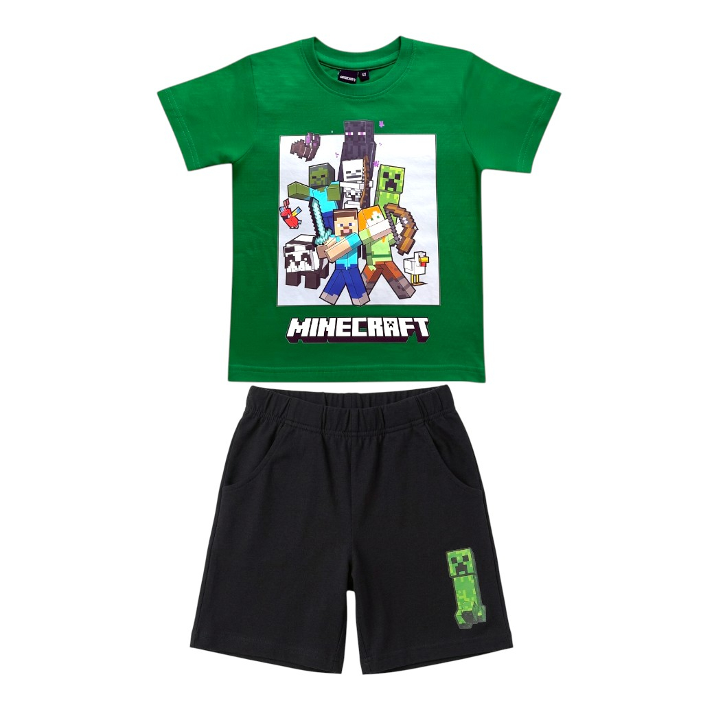 Compleu băieți, 2 piese, mânecă scurtă, 100% bumbac, negru, Minecraft
