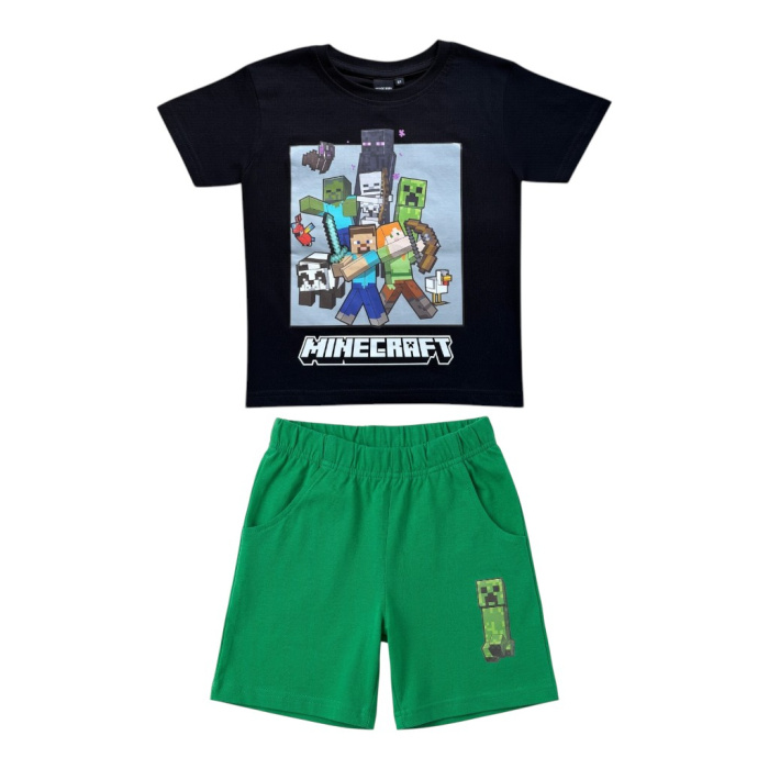 Modelul este inspirat din universul Minecraft, fiind ideal pentru micii fani ai jocului. Imprimeul vesel adaugă un plus de stil și personalitate, transformând compleul într-o alegere îndrăgită pentru joacă, plimbări sau relaxare.