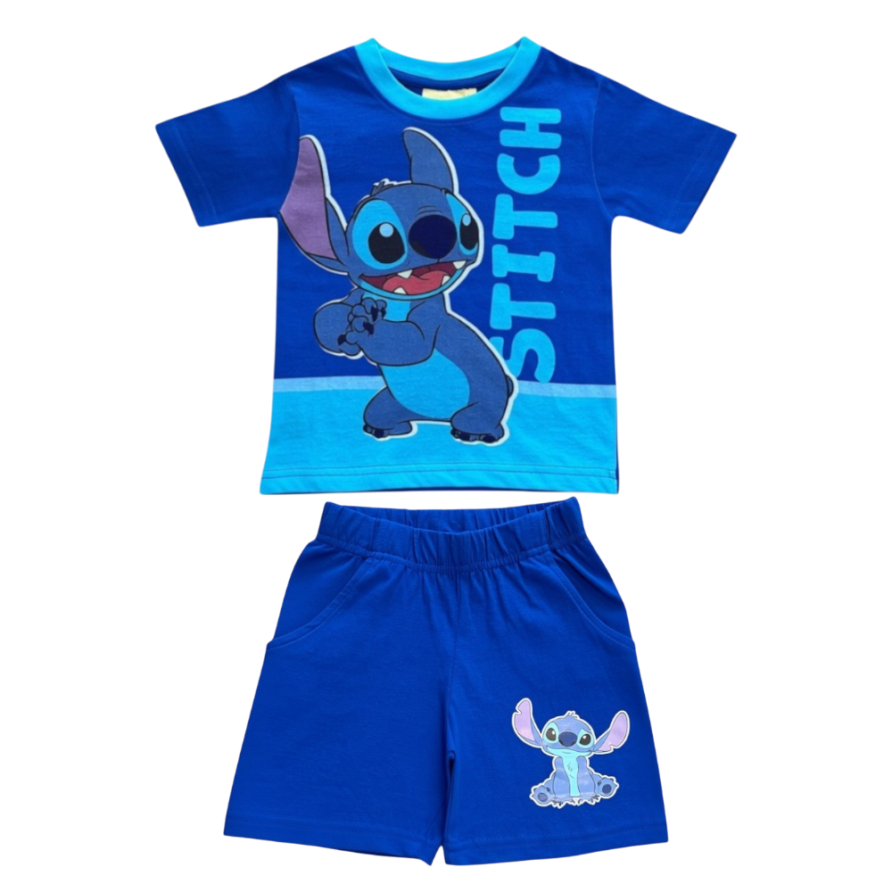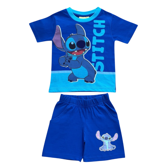 Compleu copii, 2 piese, mânecă scurtă, 100% bumbac, albastru, Stitch, Disney