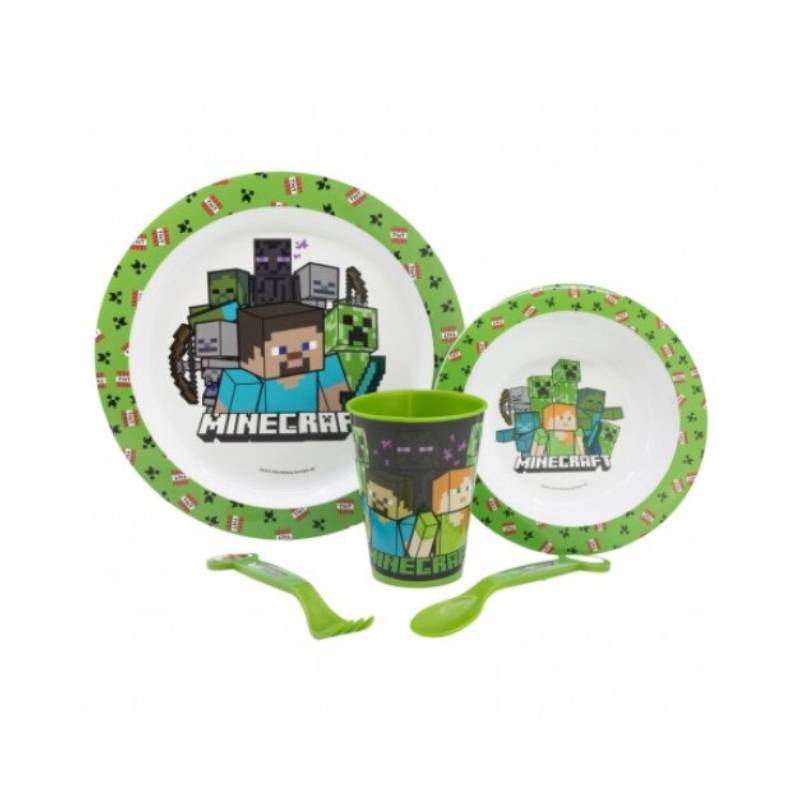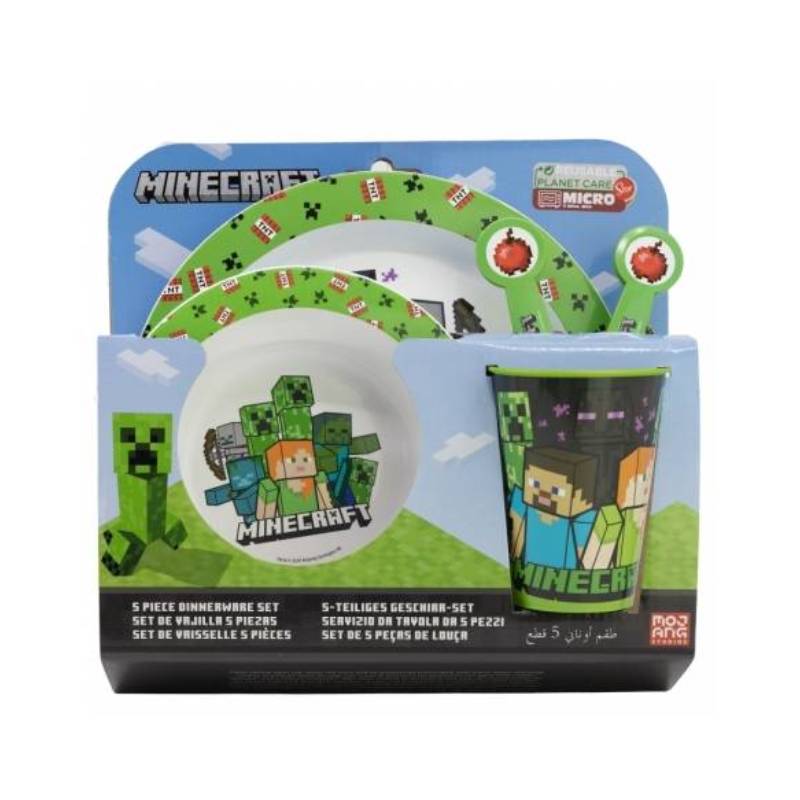 Set 5 piese pentru servit masa, Minecraft, plastic, fără BPA, utilizabil la microunde, multicolor