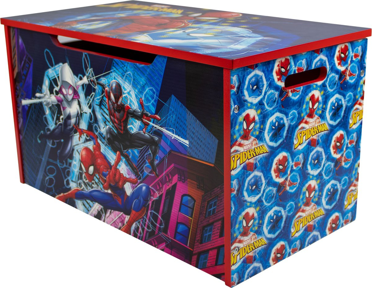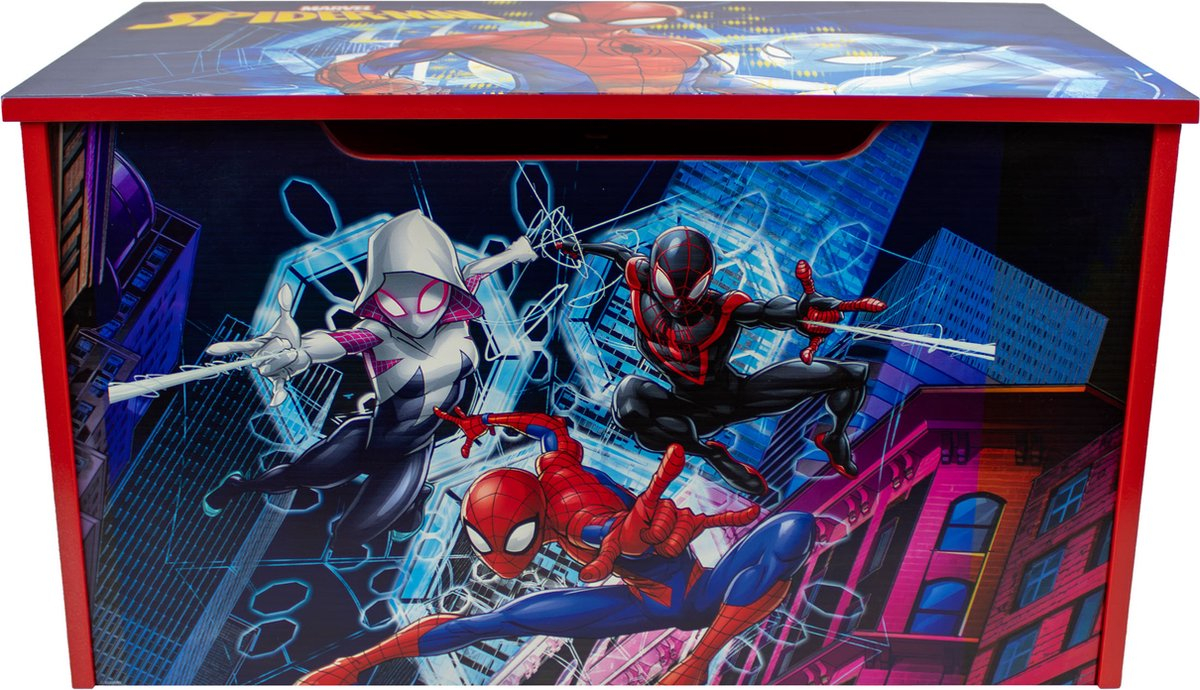 Păstrează camera copilului ordonată și plină de culoare cu această cutie de depozitare inspirată din îndrăgita serie Spiderman. Realizată din MDF rezistent, cutia oferă un spațiu generos pentru depozitarea jucăriilor, plușurilor, cărților sau altor obiecte. Designul său atractiv, cu imprimeu viu colorat in noanțe de roz și personajele preferate ale copiilor, îi încurajează pe cei mici să participe la strângerea lucrurilor.