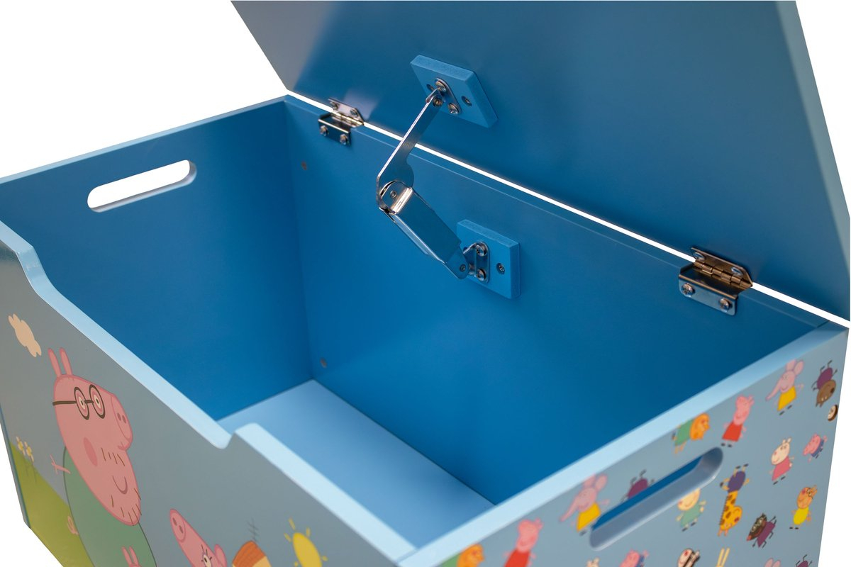 Păstrează camera copilului ordonată și plină de culoare cu această cutie de depozitare inspirată din îndrăgita serie Peppa Pig. Realizată din MDF rezistent, cutia oferă un spațiu generos pentru depozitarea jucăriilor, plușurilor, cărților sau altor obiecte. Designul său atractiv, cu imprimeu viu colorat in noanțe de roz și personajele preferate ale copiilor, îi încurajează pe cei mici să participe la strângerea lucrurilor.