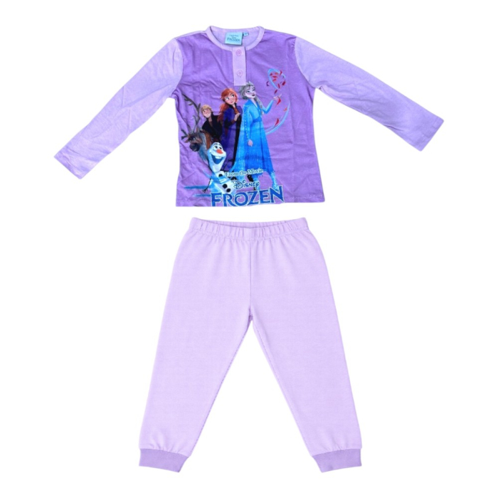Pijamale pentru copii realizate din 100% bumbac, delicate la atingere și perfecte pentru utilizare zilnică. Setul este în nuanță mov și este decorat cu personajele Frozen, asigurând un model jucăuș și atractiv. Materialul oferă confort pe durata nopții, este plăcut cu pielea copiilor și permite o bună ventilare, iar croiala lejeră asigură libertate de mișcare atât în timpul somnului, cât și în momentele de relaxare acasă.